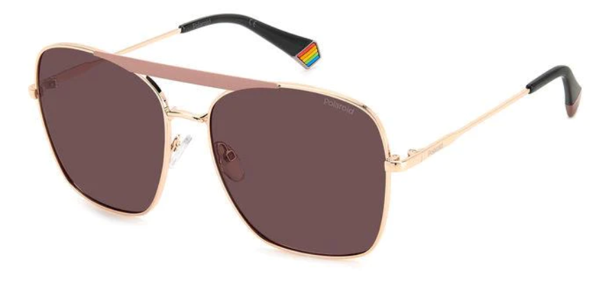 The Polaroid PLD 6201/S/X sunglasses are a chic and up-to-date option for women who want their eyewear to stand out. The ultra-flat, double bridge in a contrasting color lends a sense of refinement to the overall design, which is bold and contemporary with a square front. With adjustable nose pads and temple tips that tuck neatly behind the ear, the light, the comfortable thin metal frame is ideal for wearing all day. These sunglasses stand out from the crowd because of the subtle yet fashionable characteristic rainbow accent on the temple tips.